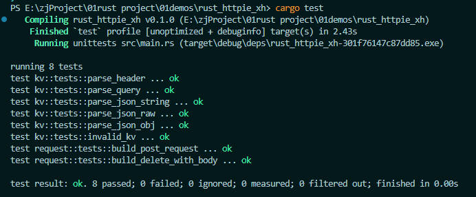 我们只需运行 cargo test,就能一次性跑完这些单元测试
